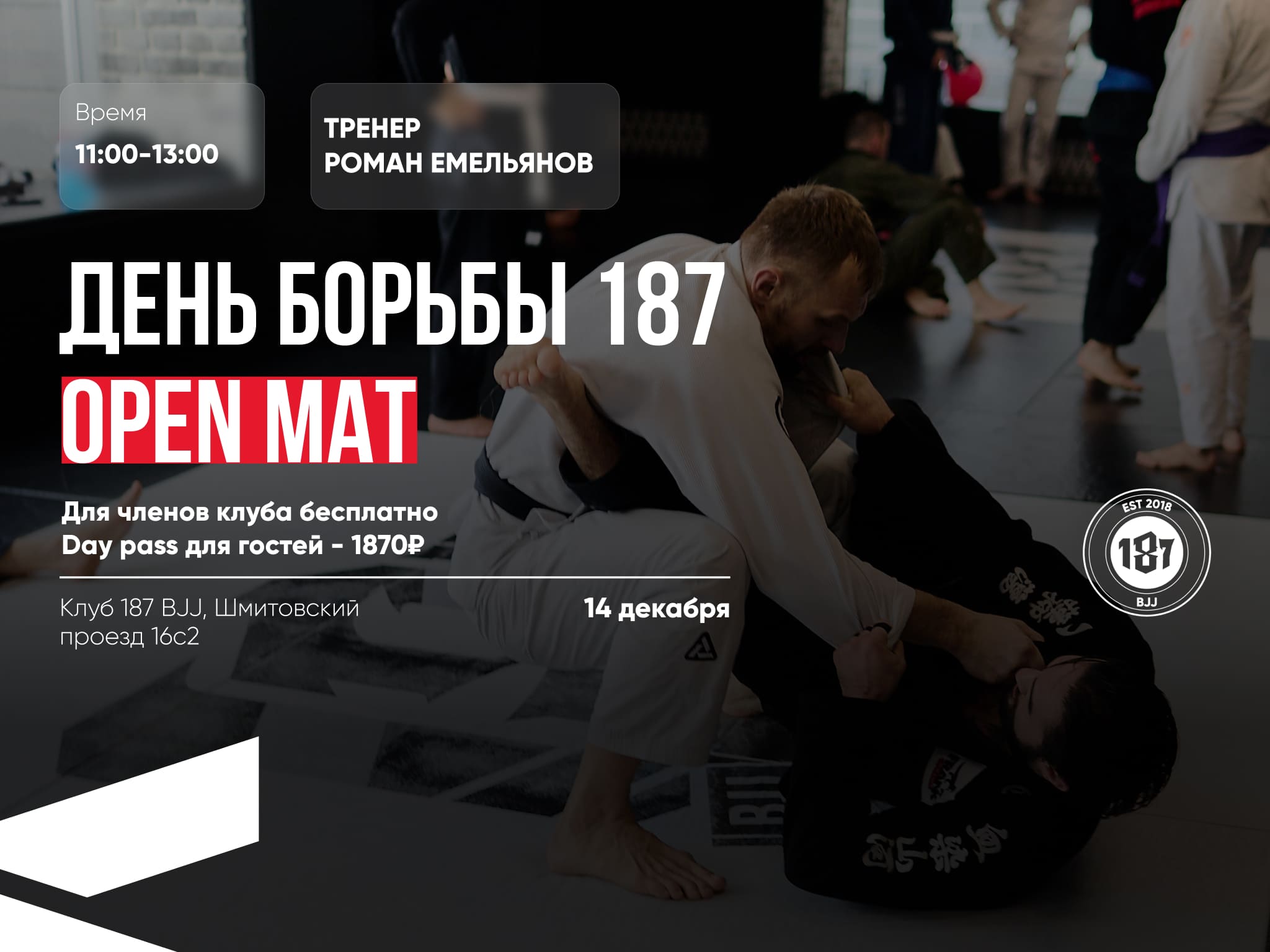 14 декабря в клубе 187 состоится очередной День борьбы 187: